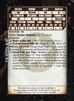 Each unique card is printed with an image and brief description on the obverse side that can be readily presented to the players, while the reverse side provides the stats, abilities and tactics that will be needed to bring the creature or character to terrifying life during an encounter. Several glossary cards provide additional information related to the common special abilities that are presented in the Mutant Chronicles 3rd Edition rulebook.
