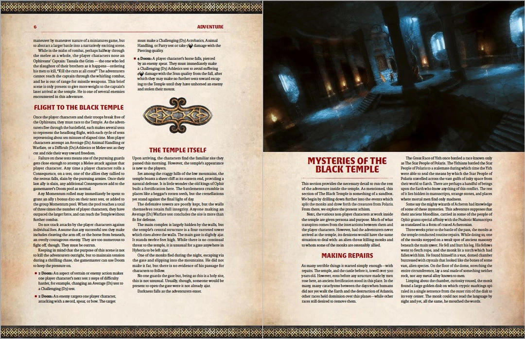 The Black Temple is a stand-alone adventure for Conan: Adventures in An Age Undreamed Of, designed to send players into far off lands in search of adventure and new challenges.